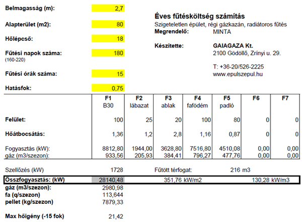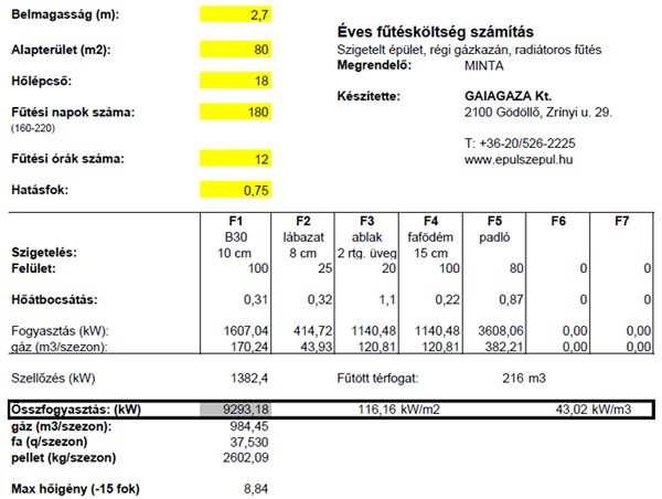 - fűtési órák száma: benapozástól és szigeteltségtől függően változik)